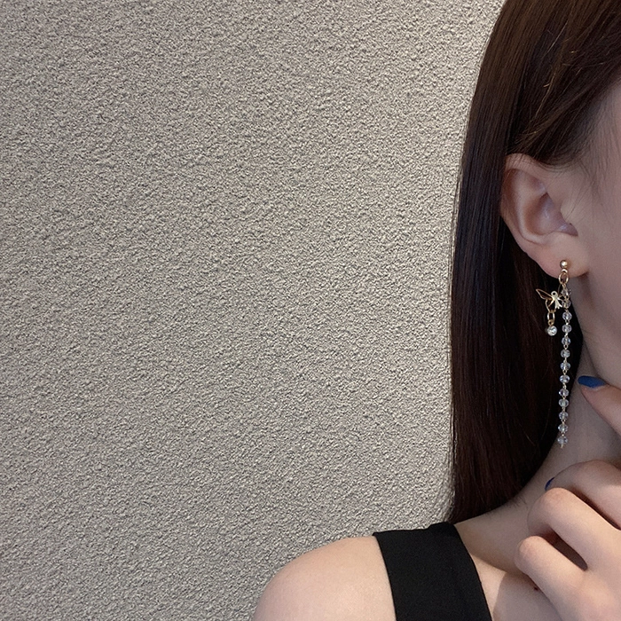 Qwerky Nest S 925 Silver Needle Light Luxury Zircon Stud Asymmetric Long Tassel Butterfly Women's Trendy All-match Earrings